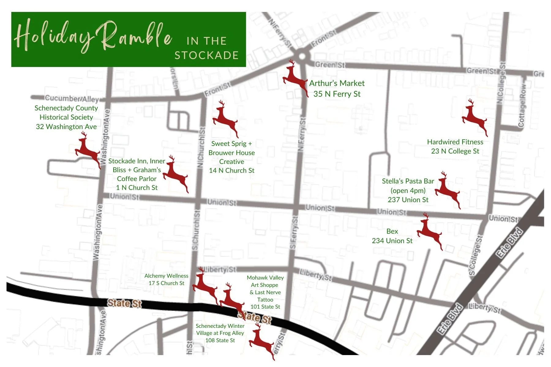 Join us for a magical day of holiday cheer and community warmth at the Holiday Ramble in the Stockade! The neighborhood will be aglow with open houses, unique shopping opportunities, and merriment at every turn. Stroll through the Stockade’s charming streets as participating businesses offer seasonal specials, festive treats, and experiences to get you into the holiday spirit.